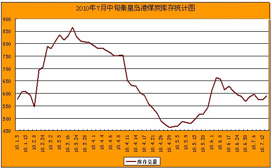 2010年7月中旬秦皇岛港煤炭库存统计图